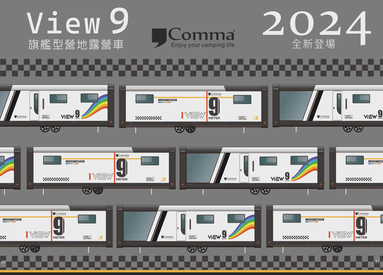 View9は、現行の220cm幅から310cmへ拡大し、より広く快適な空間を提供します。AIスマートハウスキーパーを導入し、快適さ・テクノロジー・カスタマイズ性を高めます。キャンプ場専用のこのキャンピングカーは、業界のベンチマークとなること間違いありません。温かみのある内装とシンプルでクラシックな外観は、キャンプ場でも注目の的になるでしょう。