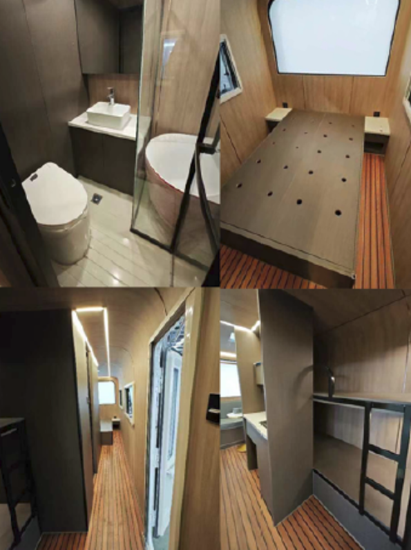 現在市場で人気のある宇宙カプセル型や金属製のキャンピングカーによく見られる問題です。室内外の温度差と70%を超える湿度により、内壁やガラスに水滴が簡単に発生します。たとえ内装が施されていても、長期間の水分接触によりカビや損傷、変形が発生します。